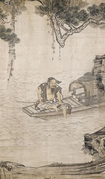 Pecheur Pensif Sur Un Bateau.