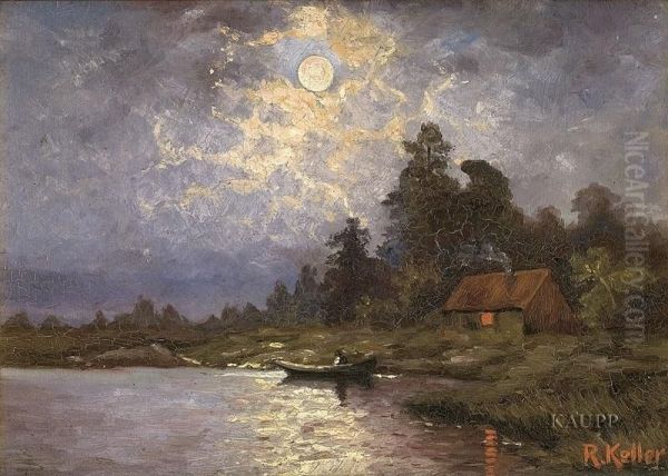 Bring the timeless beauty of A. Keller's Seenlandschaft In Vollmondnacht Mit Am Ufer Anlegendem Ruderboot Und Kleinem Fischerhaus Mit Rauchendem Kamin Auf Dem Festland. into your home with a handmade oil painting reproduction. Carefully recreated on canvas by skilled artists using traditional techniques, this piece captures the delicate brushwork, subtle light, and vibrant color of the original masterpiece. With museum-level quality and rich texture, it brings elegance and artistic depth to any space. Enjoy free shipping and make this masterpiece a part of your personal collection.