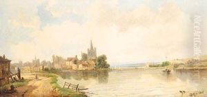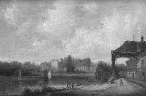 A View Of A Windmill And Sailboats On A River; A View Of A Town By A River (a Pair)