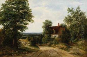 A Rural Landscape With Figures And A Village