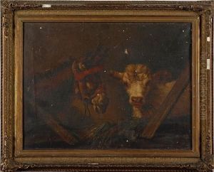 A Donkey And A Calf In A Barn