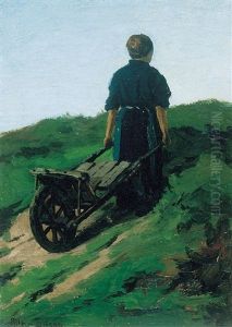 Girl With A Wheelbarrow Oil Painting by Aaron Allan Edson