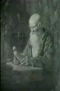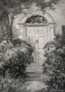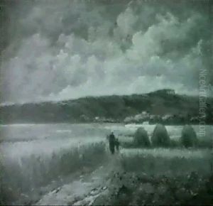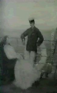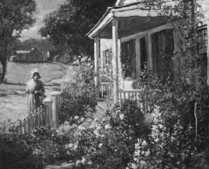 Tending The Garden/summer Garden View With Cottages And Ocean Beyond