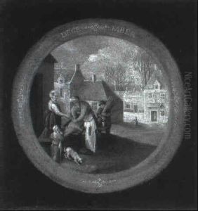 Winter Landscape With Villagers On A Frozen Canal