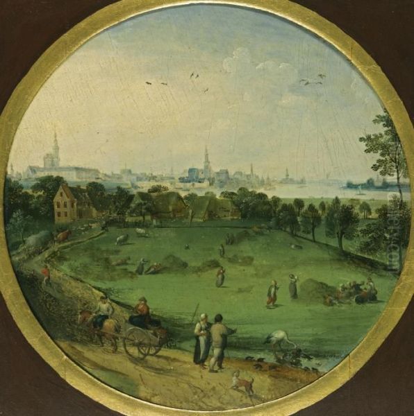 A Summer Landscape With Peasants Harvesting With A View Of Antwerp Beyond