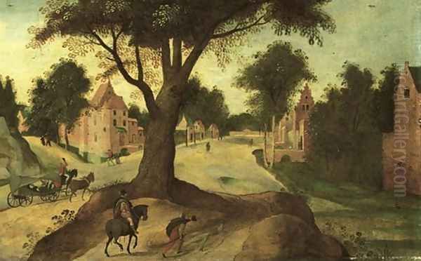 A Wooded Landscape With Travellers Entering A Town 2