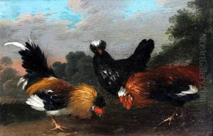 A Cockerel And Chickens In A Landscape