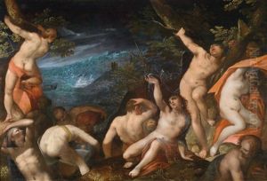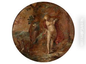 A Rocky River Landscape With Travellers On A Path, A Ruined Fortress Beyond