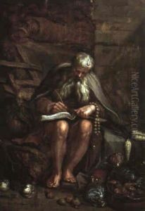 A Vanitas Still Life With Different Books, A Skull, A Crucifix And An Hour-glass, St. Jerome In The Background