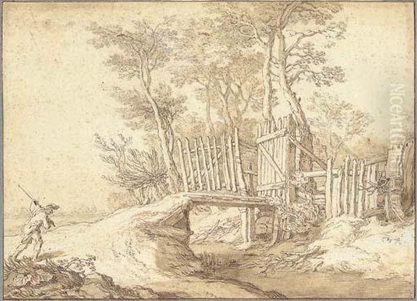 A Peasant Approaching A Bridge Over A Stream, A Wood Beyond