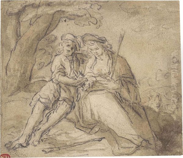 A Shepherd And Shepherdess In A Pastoral Landscape