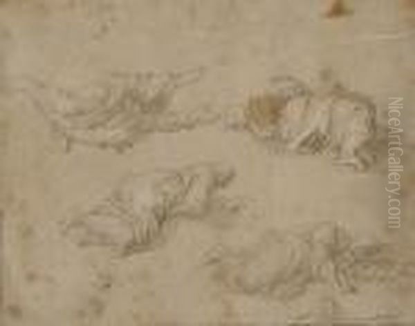 Etude De Quatre Figures Drapees Allongees