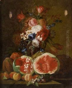 Natura Morta Con Meloni E Fiori