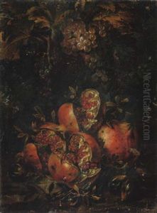 Grapes On The Vine, Pomegranates, Roses A Platter And An Urn In A Clearing