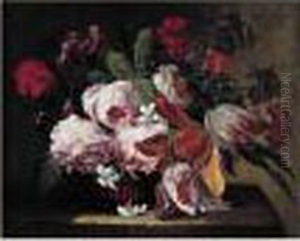 Nature Morte Au Panier De Fleurs Sur Un Entablement