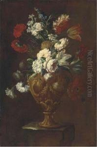 Bring the timeless beauty of Abraham Brueghel's Sculptural Cartouche with Garland Parrot Tulips, Snowballs, Roses, Morning Glory, Carnations and Other Flowers Surrounding a Portrait of a Gentleman, considered to be a self-portrait of Abraham Brueghel into your home with a handmade oil painting reproduction. Carefully recreated on canvas by skilled artists using traditional techniques, this piece captures the delicate brushwork, subtle light, and vibrant color of the original masterpiece. With museum-level quality and rich texture, it brings elegance and artistic depth to any space. Enjoy free shipping and make this masterpiece a part of your personal collection.