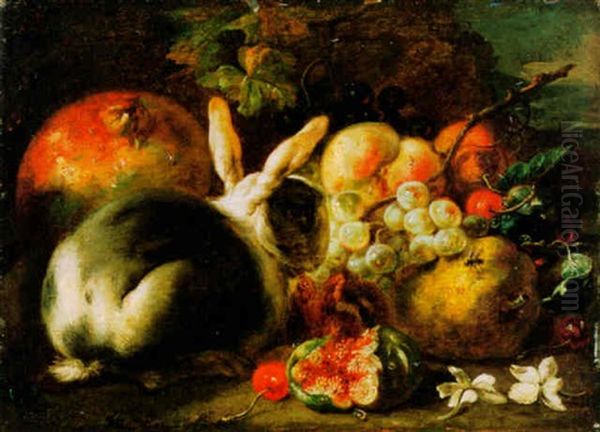 Stilleben Mit Kaninchen Und Fruchten