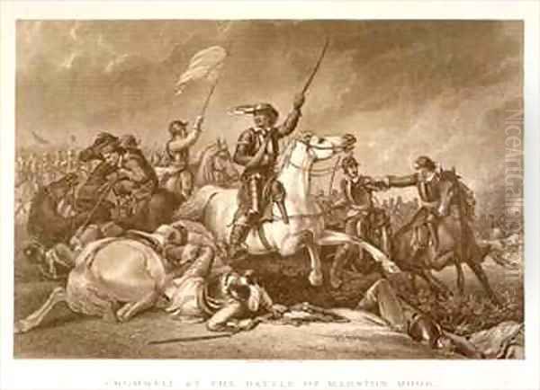 Cromwell leading the charge after being wounded in his right arm at the Battle of Marston Moor