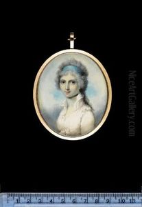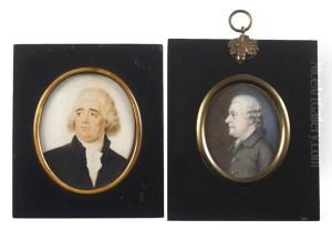 A Gentleman, Wearing Double-breasted Blue Coat With Brass Buttons Over Yellow Striped Waistcoat With Tied White Stock, His Hair Powdered