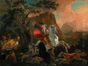 A Landscape With Hounds Chasing A Heron
