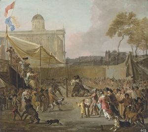 A Crowd Watching Bear-baiting In A Town Square