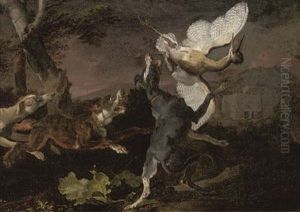 Hounds Attacking A Stork