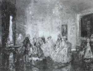A Hawking Party With A Lady Being Helped Down From Her Horse