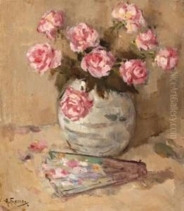 Stilleven Met Rozen En Parelcollier