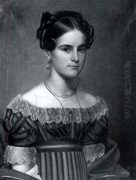 Young Lady In A Shadow-striped Rose Gown With Lace Collar And Sleeves: A Wedding Portrait Of Miss Frances Atkins