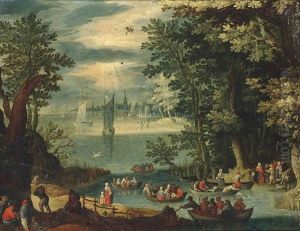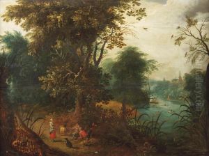 A Mountainous River Landscape With Faggot Gatherers At The Edge Of A Forest