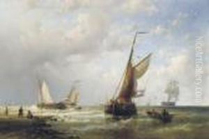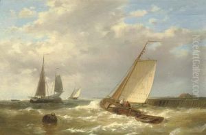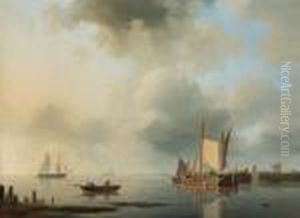 A Pair Of Seascapes: Setting Sail In Calm Waters; Boats Out At Sea