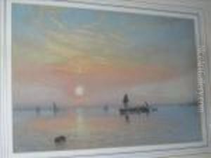A Calm: Sailing Vessels In An Estuary At Dusk