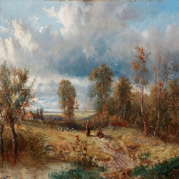 Landscaspe With Women On A Meadow