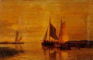 Fishing Boats Drying Their Sails At Dusk