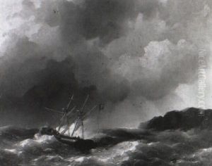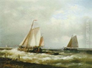 Vessels Off The Coast In A Stiff Breeze