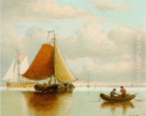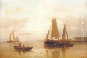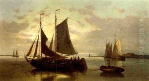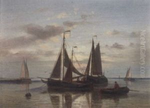 A Calm: Sailing Vessels In An Estuary At Dusk