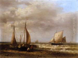 Niederlandische Fischerboote Auf Bewegtem Kustenufer