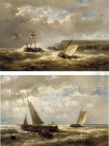 Vessels Off The Coast In A Stiff Breeze