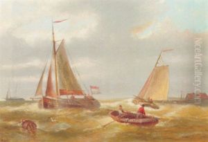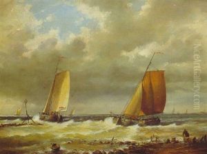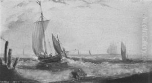Dutch Boats Off A Breakwater With A Beached Fishing Boat