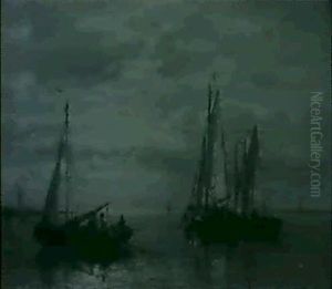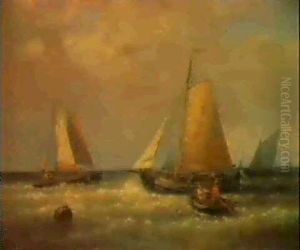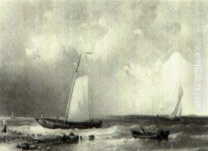 Fishermen In A Rowing Boat And Other Vessels Setting (+ Off From The Coast Morning; 2 Works)