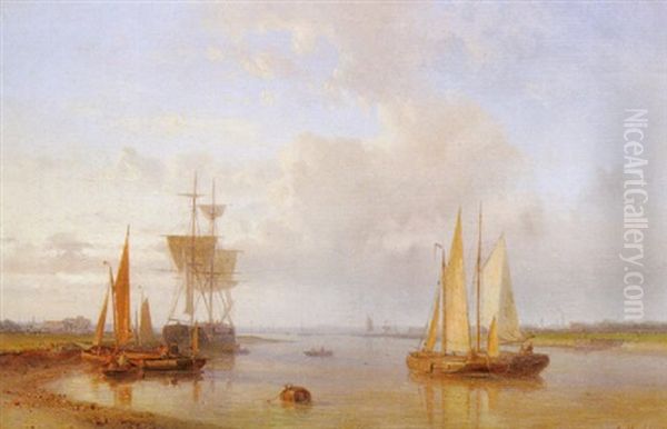 An Estuary Scene Oil Painting by Abraham Hulk the Elder