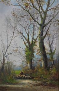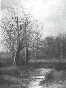 A Wooded Landscape With A Faggot Gatherer On A Sandy Track