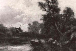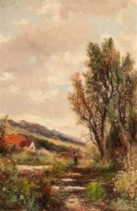 A Water Meadow With A Girl Resting Beneath A Tree; A River Landscape With A Watercarrier On A Track