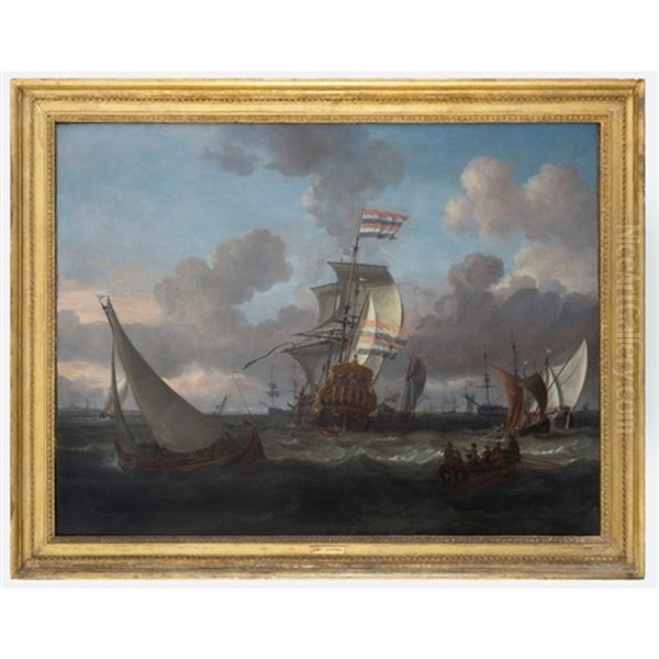 The Gouden Leeuw (golden Lion) Arriving At Her Anchorage Receiving A Salute, Off Amsterdam, Holland With Further Shipping