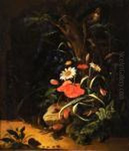 Stilleben Mit Blumen, Echsen, Froschen, Schmetterlingen Und Vogeln In Einer Grotte