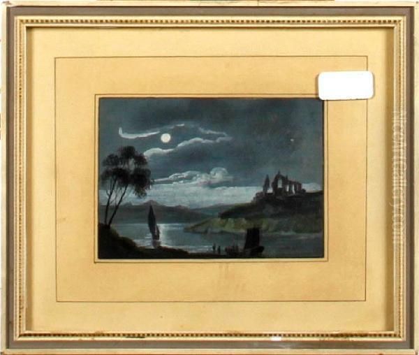 Moonlight Over A Lake And Ruins