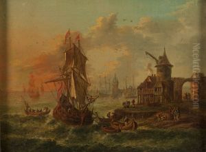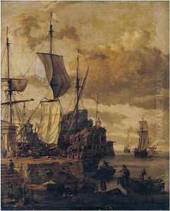 A Capriccio Of A Large Dutch Merchantman Lying Off A Mediterranean Port