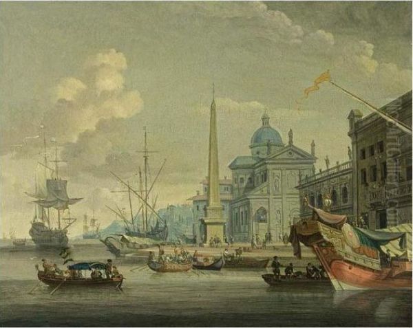 A Mediterranean Harbour Scene With The San Giorgio Maggiore And The Biblioteca Marziana Of Venice