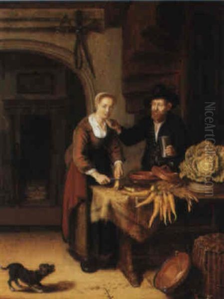 Bring the timeless beauty of Abraham de Pape's A Kitchen Interior With An Elderly Man Caressing A Kitchen Maid into your home with a handmade oil painting reproduction. Carefully recreated on canvas by skilled artists using traditional techniques, this piece captures the delicate brushwork, subtle light, and vibrant color of the original masterpiece. With museum-level quality and rich texture, it brings elegance and artistic depth to any space. Enjoy free shipping and make this masterpiece a part of your personal collection.