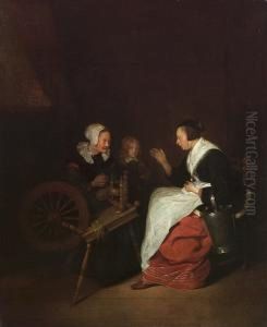 Bring the timeless beauty of Abraham de Pape's A Woman Reading In A Cottage Interior With A Spinning Wheel into your home with a handmade oil painting reproduction. Carefully recreated on canvas by skilled artists using traditional techniques, this piece captures the delicate brushwork, subtle light, and vibrant color of the original masterpiece. With museum-level quality and rich texture, it brings elegance and artistic depth to any space. Enjoy free shipping and make this masterpiece a part of your personal collection.